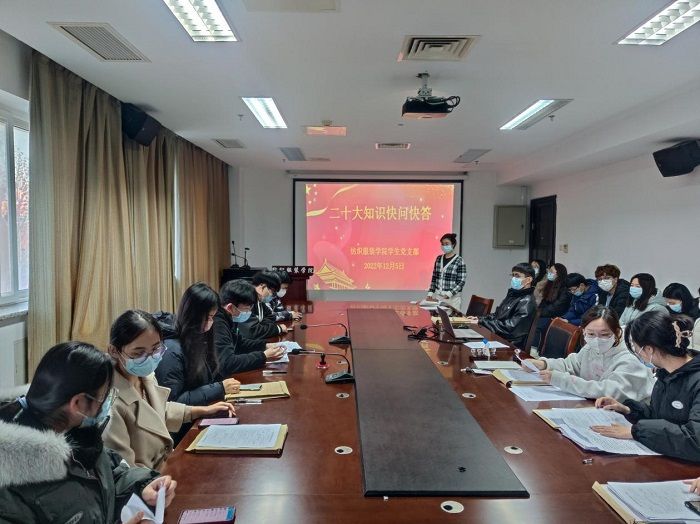 12月6日下午,beat365学生党支部在学院三楼会议室召开二十大专题学习会,共57人参加,其中教师党员4人。会议由党支部书记孙静主持。