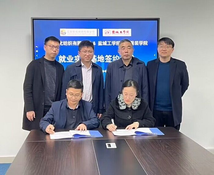随后,beat365院长王春霞与江苏欧化纺织有限公司副总经理刘忠作为双方代表共同签订《就业实习基地共建协议书》,学院党总支书记宋孝浜向公司董事长孙仁斌授予大学生就业实习基地牌匾。